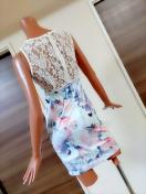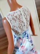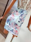 ストレッチあり、背中ファスナーあり、着やすいワンピース★背中レースでセクシーに!!胸元パール×ストーンでゴージャスに!!