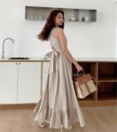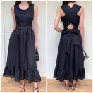 BIRTHDAYBASHBBバースデーバッシュバッククロスリネンワンピースロングマキシリボンオープンバックシャン