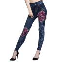 牡丹の花がプリントされたお洒落なデニム風レギンスです。