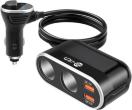 【コンパクト】2連及び2USBポートのソケット分配器である。同時に複数の電子製品が充電でき、車載充電器の不足を解消!長時間の使用や、移動時間中の充電、急なバッテリー切れなどに便利です。※1年間の保証付。