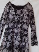 落ち着いた色合いのシックな薔薇柄、総柄の長袖ワンピースです。