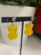 ジェルネイルとレジンを使用したクマの半立体のピアスになります。