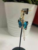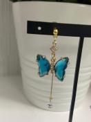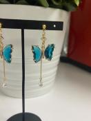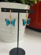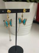 バタフライのチャームとキュービックジルコニア ドロップのデザインチャームを使用したピアスになります。