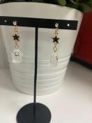ハロウィンの時期にピッタリのおばけのチャームとデザインスターチャームを使用したクリスタル付きピアスになります。