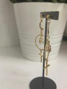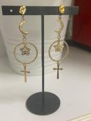 クロスのチャームとスターのチャームと月のつなぎパーツを使用したピアスになります。