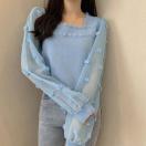 シンプルニットソー/袖チュールニット春/着回し異素材ニット