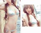 メタリックカラーのセクシーな三角ビキニ・上下セット。