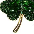 ゴールド色にグリーン色の葉っぱ、大粒と小粒のラインストーンが入って可愛いブローチです。