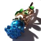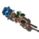 青色の花に緑色の葉っぱ、金色の茎でゴージャスです。
