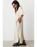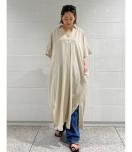 スキッパー型のオーバーシャツワンピース。清涼感のあるリネン素材を使用したこれからの時期に活躍するアイテム。シンプルながら、さりげない部分にピスネームなどロデオらしいポイントが施された一着です。