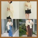キャミソールの上に羽織ったコーディネートは、スカート合わせにもパンツ合わせにもマッチし抜け感のあるスタイルへと導きます。
