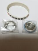 タッチライブと2011年DJO大会の缶バッチとターゲットのラバーブレスです。