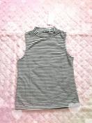 ★ハイネックデザインのボーダー柄ノースリーブ