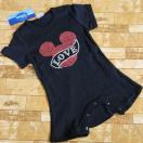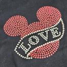 全体的に黒地で中央に赤いミッキー型&白いLOVEの英字ドットプリント。