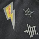 バックには黄色いラメの稲妻マーク、ストライプ柄とドット柄の星プリント。