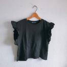 ◆ZARA/ザラ◆フリル袖カットソー★ブラックM*シンプルコーデ♪美品