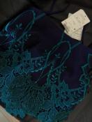 ●宇宙や天候を支配する神をイメージしたスリップ。 雷や雨、雲、雫をモチーフに、ダイナミックにデザインしました。 手間を惜しまずつくりあげた何層にも重なる立体的なアップリケなど、 迫力のあるラグジュアリーな美しさで魅了します。