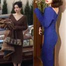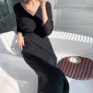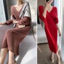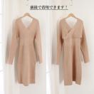 エレガントに女性らしさを引き立てる前後Vネックカシュクールニットワンピースです。