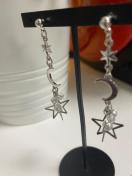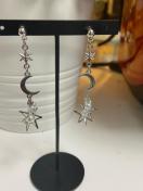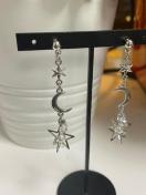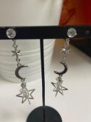 月のつなぎパーツと星のチャームとビーズを使用したピアスになります。
