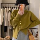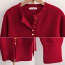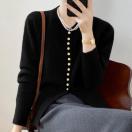 ゴールドボタンがアクセントとなり、ニットセーターにエレガントな輝きをプラス!