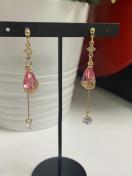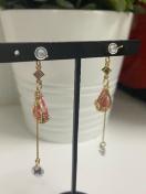 しずくのチャームとデザインチャームを使用したピアスになります。キュービックジルコニア付きデザインチャームを使用しております。