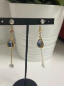 しずくのチャームとデザインチャームを使用したピアスになります。キュービックジルコニア付きデザインチャームを使用しております。