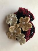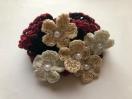 キラキララメ入りレース糸で編んだお花をいっぱいあしらって♪