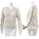 細い糸と太い糸が複雑に絡まりあってつくられた規則的なニットが美しいSTELLA McCARTNEYのコットンセーター。肘部分に開けられた穴もオシャレ度を一層高めています。