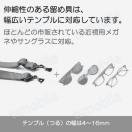 伸縮性のある留め具は、幅広いテンプルに対応しています。