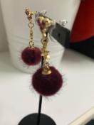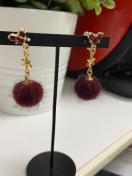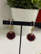 ハンドメイド フェイクのファーボールを使用した樹脂のノンホールピアス ハート ワイン