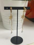 デザインチャームと雪の結晶のチャームを使用したイヤリングになります。
