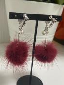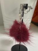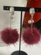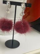 ハンドメイド フェイクファーのチャームとパールビーズ、ビーズを使用したイヤリング ボルドー