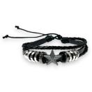 レザーを編み込んだブレスレットに燻し銀の星やシルバーのリングパーツが付いたレザーブレスレットを重ね付けした様な3連デザインのブレスレット☆