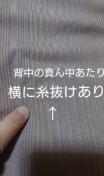 検品時に気づいたのですが、背中側真ん中あたりに、横に10cm程、糸抜けしている箇所があります。(写真7,8枚目)