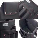 腰袋」腰ベルトに取りつけて、工具やネジ、クギなどの資材を腰に下げておくための収納袋です。よく使う道具を腰袋に入れて、作業に応じて工具を取り出して素早く作業できるようになり、作業効率がアップします。