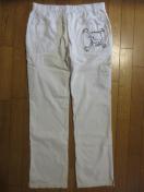【USED】 大きなダメージはありませんがUSEDをご理解の上・・・ノークレーム・ノーリターンよろしくお願いします。 細かいヨゴレなどあります。 ホワイト ポリウレタン2%混紡 ウエスト:約41cm 股下:約79cm 裾幅:約21,5cm 【発送方法】 レターパックプラス(¥600)締切日時