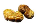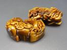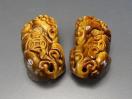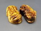 AA品タイガーアイ色合い良好金銭ヒキュウ彫り2個ペア