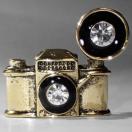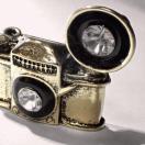 淡い金色のボディに、レンズとフラッシュにラインストーンが入ってお洒落なカメラです。