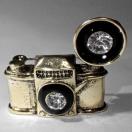 アンティーク カメラ 薄金色 ゴールド色 ラインストーン ピンブローチ ブローチ バッジ ピンバッジ ピンズ ラペルピン
