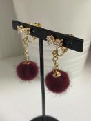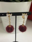 フェイクのファーボールのチャームを使用したイヤリングになります。