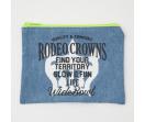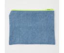 0528デザインのプリントが施されたデニムポーチ。洗い加工が施されており、ビンテージの雰囲気を出したデニム素材を使用。ファスナーにネオンカラーを使用しているのがポイント。