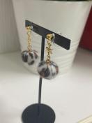 レオパード柄のファーボールを使用した樹脂のノンホールピアスになります。