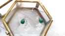 うるうるのダイスカットの水晶に鮮やかなグリーンアベンチュリンのドロップをあわせたショートピアスです。