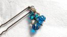 ブルーにゴールドのラインが入った、少しエキゾチックさのあるビーズを使ったかんざしです。