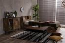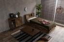寄木柄を使用した「Cave 寄木柄引出し付ベッド」は、幾何学的な模様で存在感抜群の仕上がりです。