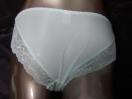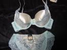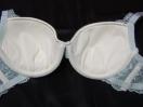 ライトブルーとシルクホワイト使いのセットです、ブラとショツはセンター部分に光沢感強めのシルクホワイト使いブラサイドからバックにかけてレース使い、ショツはヒップラインが響かないレースを使用