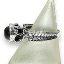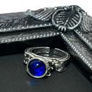 綺麗なブルーのキャットアイが立体的にデザインされたシルバーリング