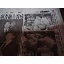 6対2で勝利した新聞記事と元大関朝潮関死去の新聞記事です。