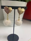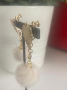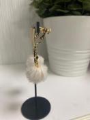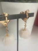 フェイクのファーボールチャームを使用したイヤリングになります。