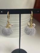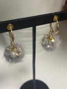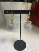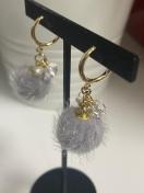 フェイクのファーボールチャームを使用したフープイヤリングになります。